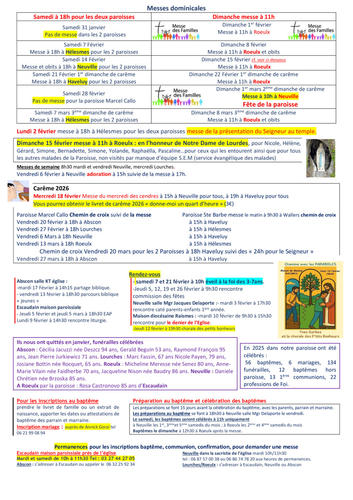 Article publié par response.text()) .then(text => { html = text showLoading = false; })" class="flex justify-center animate-grow-on-hover--small">paroisse marcel callo • Publié le Jeudi 29 janvier 2026 • 12 visites 2026 fevrier 2026 - 2 Télécharger 1.2 Mo Télécharger