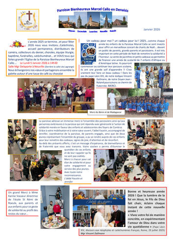 Article publié par response.text()) .then(text => { html = text showLoading = false; })" class="flex justify-center animate-grow-on-hover--small">paroisse marcel callo • Publié le Vendredi 26 décembre 2025 • 6 visites 2026 janvier 2026 Télécharger 1.2 Mo Télécharger