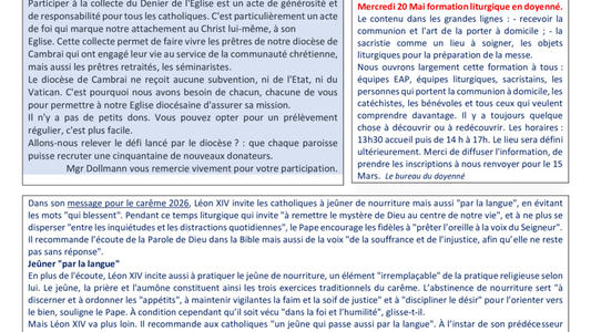 feuille mensuelle corrigée l'église d'Escaudain étant fermée